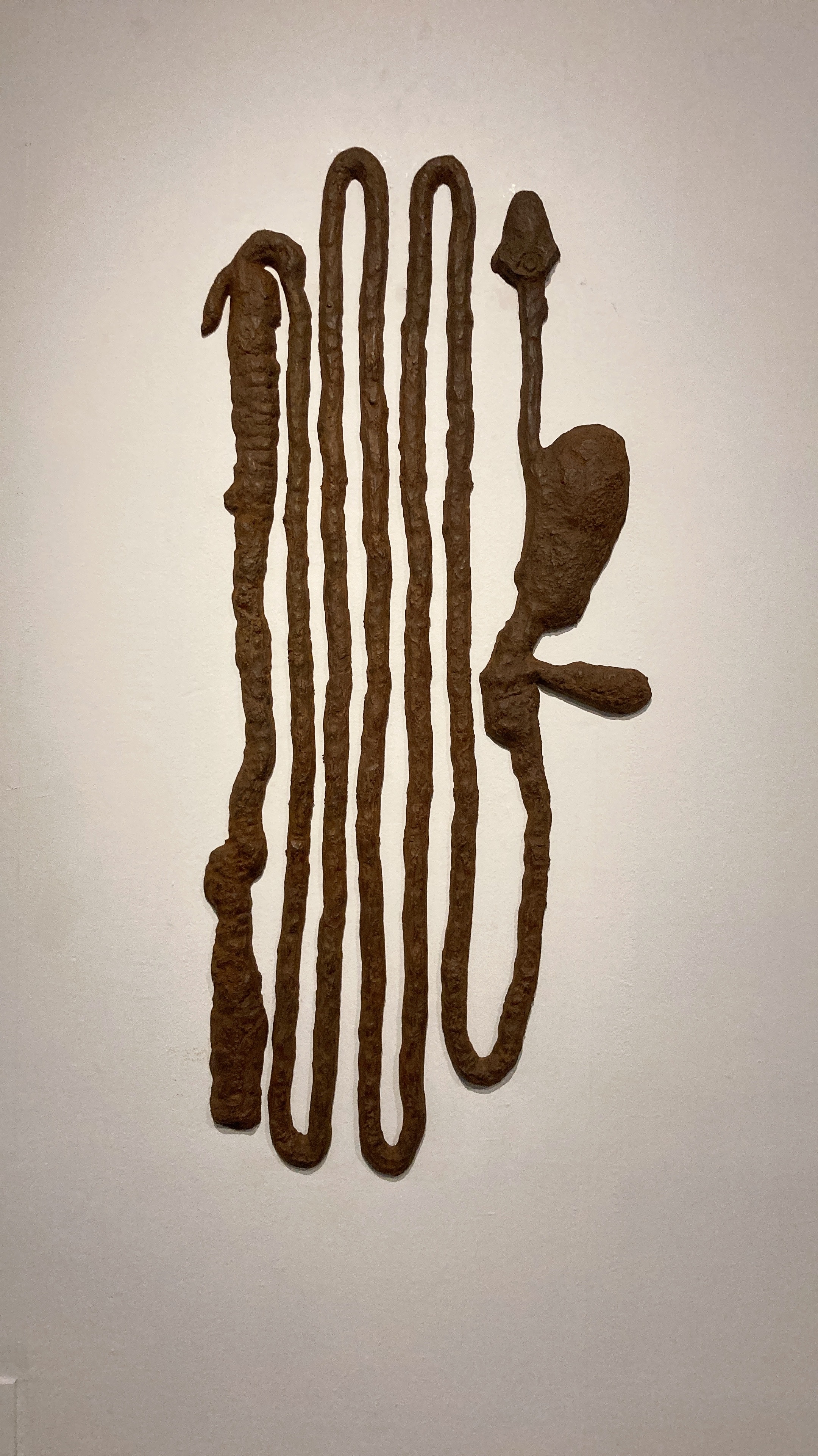 전시장에 들어가자마자 충격을 받고 한참을 들여다보았던 몇 가지 작품을 소개해봅니다. ‘푸른 소녀’와 ‘SKY’ 태피스트리 작품은 미적으로 꿈결같이 아름답다는 감상에 젖게 했습니다. 내장을 라디에이터로 표현한 작품이나 늑대의 몸을 가르고 나오는 여성의 모습을 빚은 ‘황홀’ 작품에서는 어떤 해방감과 생동감을 느꼈습니다. 그 공간에 있다는 것만으로도 나라는 존재의 안과 밖을 넘나드는 느낌이었달까요. 흰 머리카락을 너풀너풀 풀어헤친 채 자신의 작품을 지켜보는 키키 할머니 사진을 보고는 한눈에 반해버렸습니다. 당시 전시를 소개한 <보그> 잡지의 키키 스미스 인터뷰 기사(https://zrr.kr/QLe2mB)를 링크로 달아둘 테니 관심 있으신 분들은 한번 들어가 보시길 바랍니다.